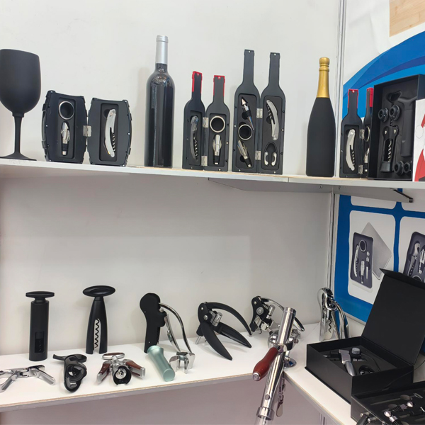 Rangkaian produk kita nyakup macem-macem pembuka anggur stainless steel lan paduan, corkscrews, alat sampanye, penet bawang putih, krupuk kacang, pembuka kaleng, pengupas, pelunak daging, shaker koktail, hip-flask stainless steel lan macem-macem set anggur sing digawe saka kayu utawa PU, uga kothak anggur.