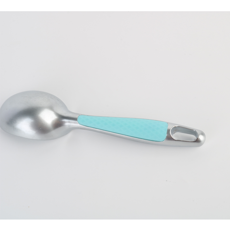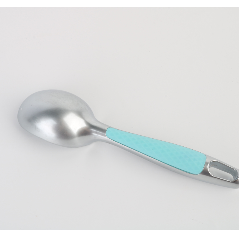 Sendok es krim paduan seng profesional kanthi mesin pencuci piring sing nyaman kanthi bantalan sing unik, gagang plastik non-slip dumunung ing sisih mburi produk, dirancang khusus kanggo genggeman sing optimal nalika nggunakake genggeman mundur papat driji. kepraktisan karo pakaryan elegan ing saben rinci.