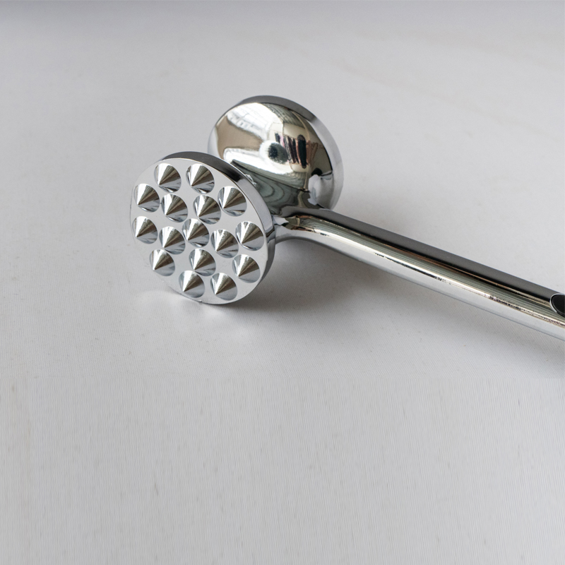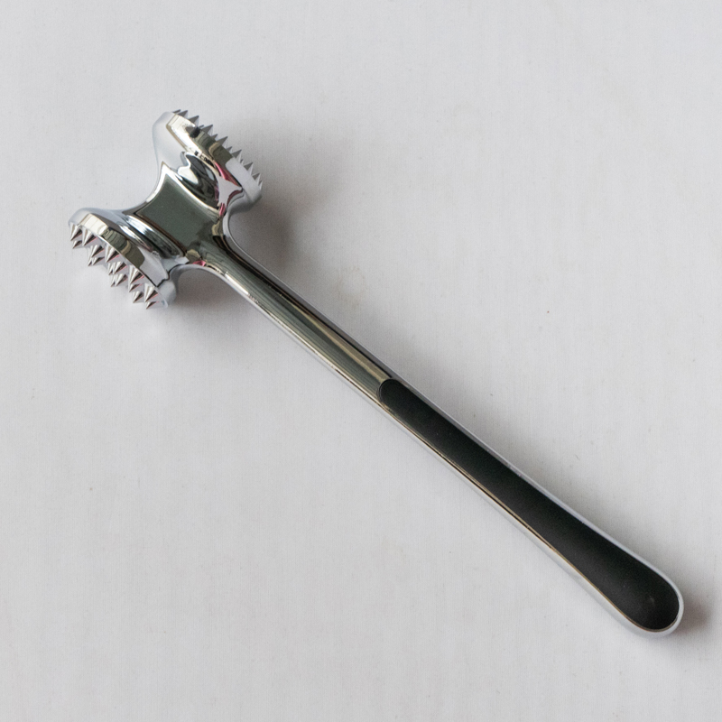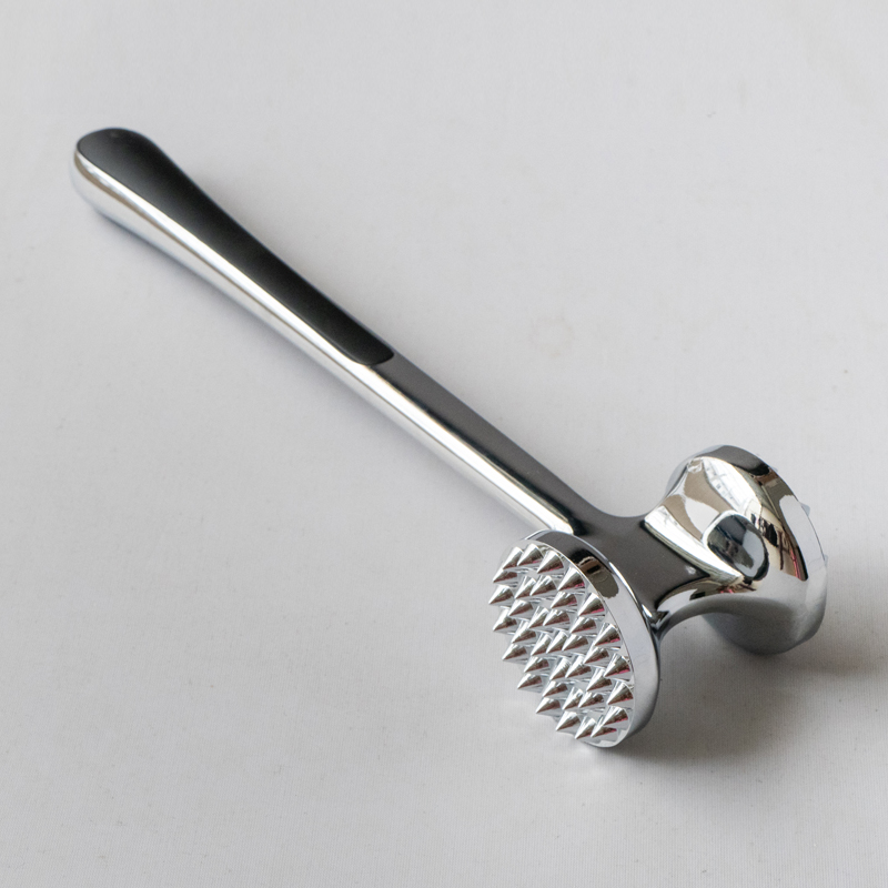 Iki minangka tenderizer daging alloy seng diprodhuksi dening Jinhua Hanjia Commodity Co., Ltd, diprodhuksi nggunakake proses die-casting terpadu. Lumahing logam kasebut kanthi teliti, polesan karo tangan lan kabeh prodhuk ngalami proses electroplating aman Eco-loropaken. Lapisan banjur passivated kanggo nggawe hard minangka steel. Kanthi dawa 22 cm kanggo distribusi bobot diwasa ing ngarep. lan mburi saka pelembut daging dirancang miturut rasio emas, ngidini pangguna nyerang daging kanthi gaweyan minimal, mung ngandelake gravitasi kepala palu. Kepala pelembut daging nduweni rong permukaan sing beda kanggo macem-macem jinis daging. Penyangga plastik ing loro-lorone gagang nyedhiyakake kenyamanan kanggo panggunaan sing suwe. dening luwih saka 13%. Iku uga gampang banget kanggo ngresiki, sampeyan mung bisa mbilas nganggo banyu utawa nggunakake dishwasher.